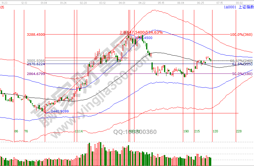 2號午盤在贏家江恩系統(tǒng)學(xué)員區(qū)及當(dāng)日收盤分析中,講述了通過極反通道判斷出的短周期周期共振警示信號,所提出結(jié)論目前正在一步步得到市場的確認(rèn),逐級回踩生命線,這也是近兩日一直談到不讓開新倉的技術(shù)依據(jù),短期警示信號是結(jié)束還是展開新的周期修整,將于今天見分曉。整體上2840附近所展開的反彈還沒有結(jié)束,短線具有參考價(jià)值就是60分鐘的生命線位置。,7月5號盤中壓力是45度3016點(diǎn)、90度3036點(diǎn),盤中支撐是315度2978點(diǎn),下個(gè)時(shí)間窗口是15號。操作策略,指數(shù)極反通道生命線上安全區(qū)域震蕩上攻,反彈動(dòng)作還未結(jié)束,短線關(guān)注2978-2983位置,整體持倉保持3-5成。