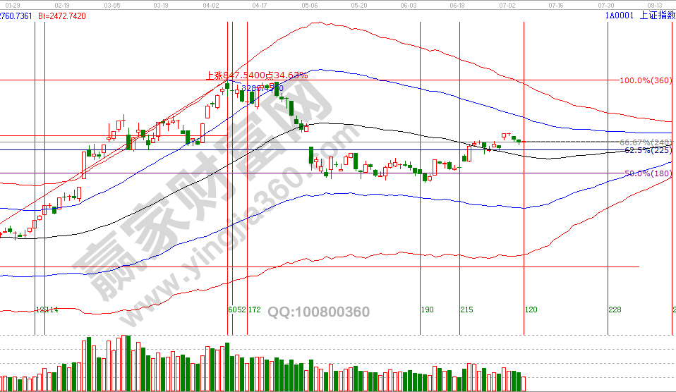 了解如何判斷未來的市場運(yùn)行,最快的方法就是研究歷史。2號(hào)依據(jù)贏家江恩系統(tǒng)工具所提出的周期共振警示信號(hào),并給出回探期具有參考價(jià)值的位置是60分鐘生命線,經(jīng)過3天時(shí)間市場再一次驗(yàn)證了極反通道周期推導(dǎo)的實(shí)戰(zhàn)性,此方法應(yīng)用在學(xué)員區(qū)有過講解。指數(shù)觸及至短期關(guān)鍵位后出現(xiàn)止跌,強(qiáng)度不佳,但午盤點(diǎn)評(píng)中談到輕倉或空倉者午盤可以試探性參與,一切遵守方法信號(hào)、用紀(jì)律規(guī)則交易,這是同普通散戶巨大差別。本周參考位支撐是2944、2978點(diǎn),壓力是3051、3074點(diǎn),7月8號(hào)盤中壓力是45度3016點(diǎn)、90度3036點(diǎn),盤中支撐是315度2978點(diǎn),10號(hào)為土星沖日。操作策略,指數(shù)極反通道生命線上安全區(qū)域震蕩上攻,反彈動(dòng)作還未結(jié)束,今日博弈籌碼以短期關(guān)鍵位做決策,整體持倉保持3-5成。