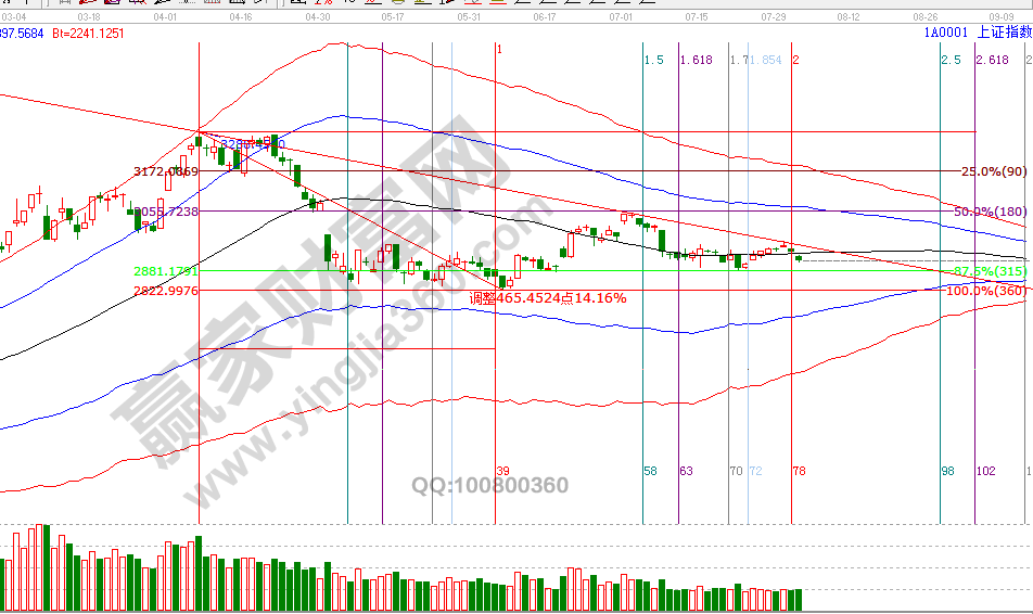 2966是近期一直強(qiáng)調(diào)的反彈重要阻力位,30號(hào)上攻到2965.6(精準(zhǔn)無誤差)后如期受阻回落,再次彰顯江恩對(duì)價(jià)格點(diǎn)位的精準(zhǔn)計(jì)算。按照規(guī)則壓力位下逢高兌現(xiàn)不開新倉,等待8月1日時(shí)間窗口。1號(hào)時(shí)間窗,指數(shù)失收生命線,趨勢(shì)再度轉(zhuǎn)弱。8月2號(hào)盤中壓力是135度2911點(diǎn)、180度2928點(diǎn),盤中支撐是90度2894點(diǎn)、45度2877點(diǎn)。操作策略,指數(shù)失守日線生命線,失守60分鐘生命線,穩(wěn)健者繼續(xù)休息,等待新的交易信號(hào)出現(xiàn)。整體倉位控制在3成內(nèi)。