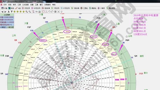 ☆依據(jù)贏家江恩理論系統(tǒng)江恩輪中輪提示:以1月4日2440點制做輪中輪圖表,按輪子(上帝之眼)時空循環(huán)判斷關鍵位如下,45度2746點(8月2733確認)、60度2847點(5月確認)、90度3051點(9月3048確認)、120度3254點(4月3288確認)是2019年關鍵位。10月份關鍵位90度(3051點),未放量突破前會再探60度(2847點)。