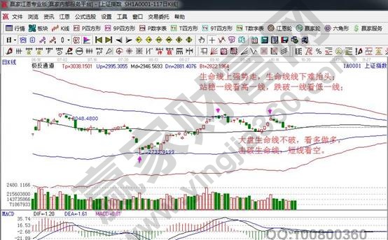 ★依據(jù)贏家江恩理論系統(tǒng)極反通道提示:指數(shù)日K線在黑色生命線2928點上運行,按規(guī)則生命線上看多做多。