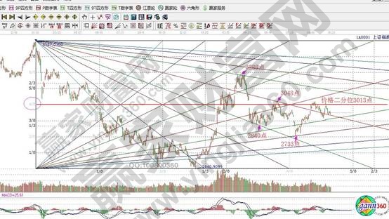 ★依據(jù)贏家江恩理論系統(tǒng)自由時間價格計算器(江恩箱)提示:以3587為起點,2440點為終點做圖,指數(shù)在下降1*1線獲得支撐,此線企穩(wěn)不破,目標看高至價格二分位3013點。