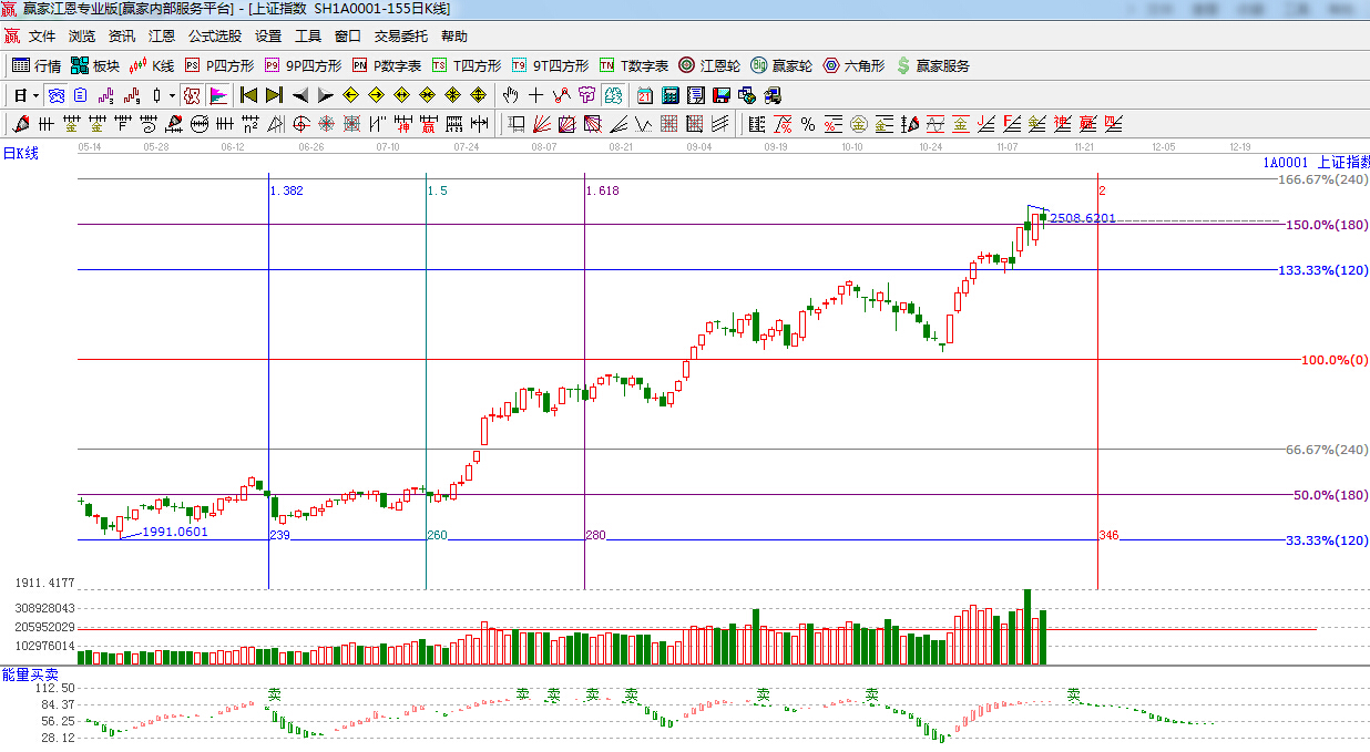 江恩看盤(pán)綜述:依據(jù)贏家江恩技術(shù)工具分析得出:全天圍繞江恩180度震蕩,終盤(pán)再報(bào)十字星,目前60分周期背離嚴(yán)重,180度支撐是2480點(diǎn),此位置一旦破位,下方目標(biāo)位是120度是2410點(diǎn),短線謹(jǐn)慎為主。操作上,有盈利個(gè)股注意逢高兌現(xiàn),漲幅過(guò)大的,要注意其殺跌風(fēng)險(xiǎn)。