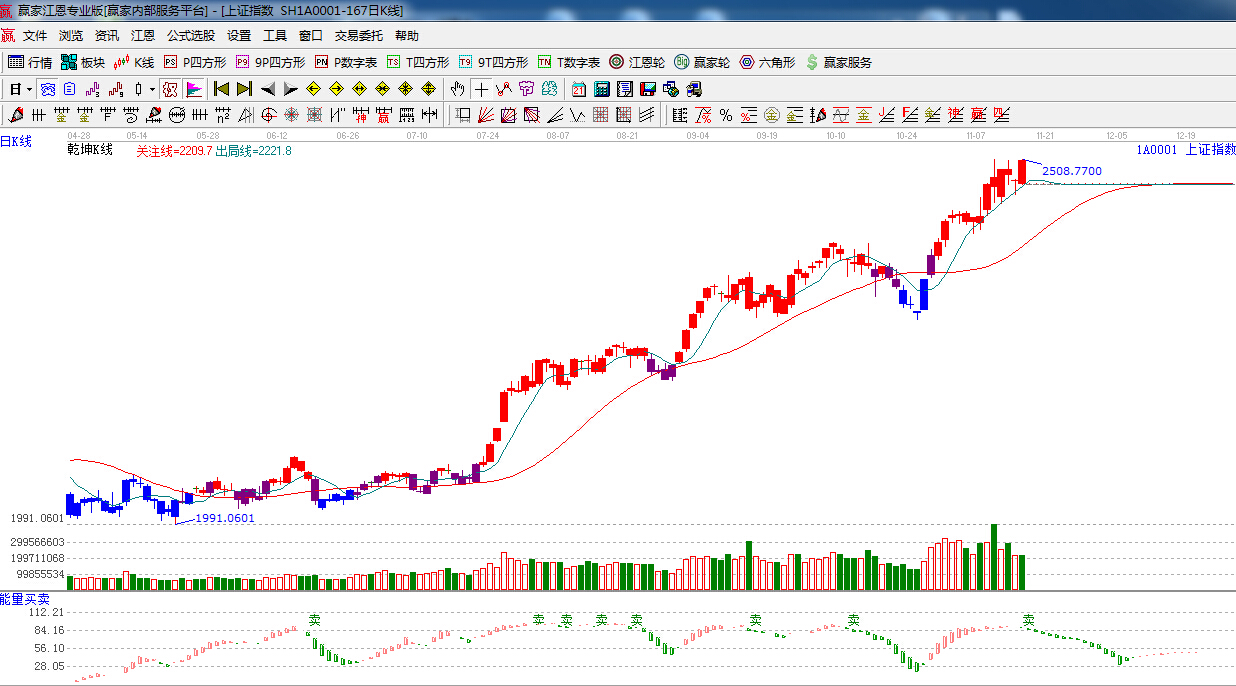 ☆依據(jù)贏家江恩系統(tǒng)能量買賣提示:處于多空臨界點(diǎn),并有“賣”字出現(xiàn),短線謹(jǐn)慎看多。