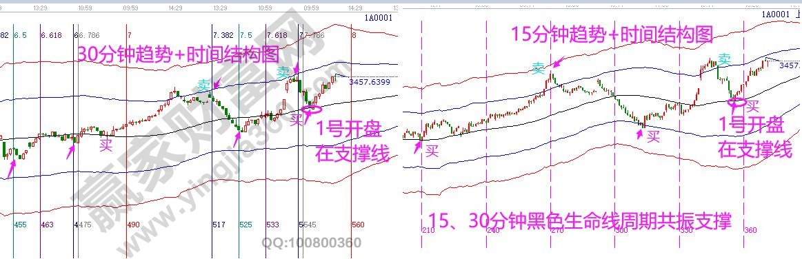 1號滬指再度逼近7月3458高點,突破高點勢在必得。30號上攻日線江恩箱8*1線與極反通道藍色上軌線共振壓力回落,對1號市場分析預判中談到,60分鐘生命線上運行市場還將延續(xù)反攻,此結(jié)論是從短周期時間結(jié)構(gòu)中推導得出??臻g上學員可以打開工具,通過極反通道查看30、15分鐘K線圖,周期共振信號直觀、清晰可見,在贏家江恩體系中此信號是解決如何確立買賣點,市場流傳一句會買的是徒弟,會賣的是師傅,而該信號不僅解決了買點,更解決了賣點,同時成功率達85%以上,并且信號出現(xiàn)就是空間拐點,是廣大投資者所期望的買在低點賣在高點模式。2號下午3:30將在學員群講解此模式實戰(zhàn)應(yīng)用技巧,聽課方式聯(lián)系贏家工作人員。