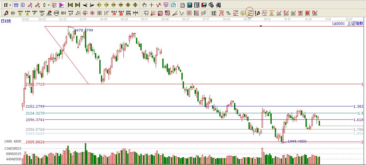 ☆依據(jù)贏家江恩系統(tǒng)黃金價格伸線延提示:大盤破位黃金分割1.618位置,下一支撐位置1.786區(qū)間2055附近。