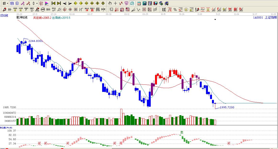 ☆依據(jù)贏家江恩系統(tǒng)乾坤k線提示:大盤處于藍色區(qū)域,多看少做。