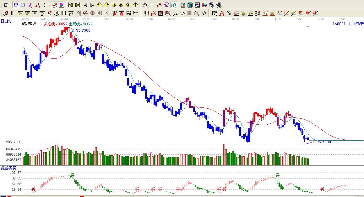☆依據(jù)贏家江恩系統(tǒng)乾坤k線提示:大盤處于藍(lán)色區(qū)域,多看少做。