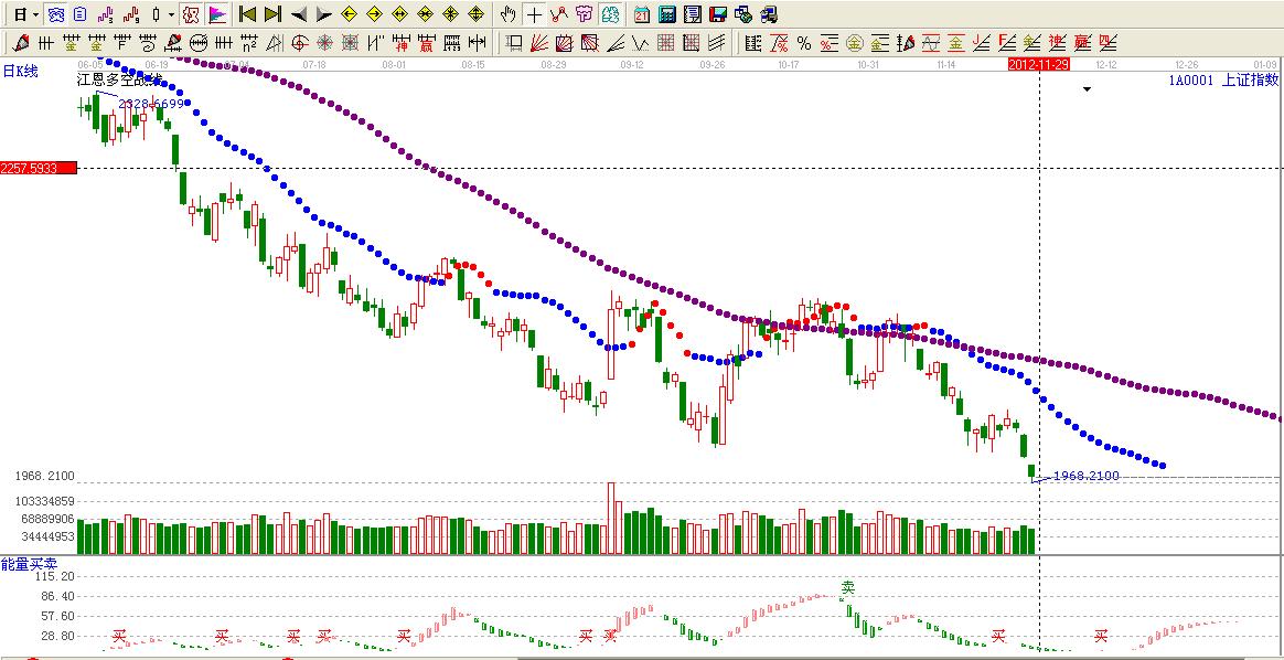 ☆依據(jù)贏家江恩系統(tǒng)能量買賣提示:能量買賣綠色。看空休息。