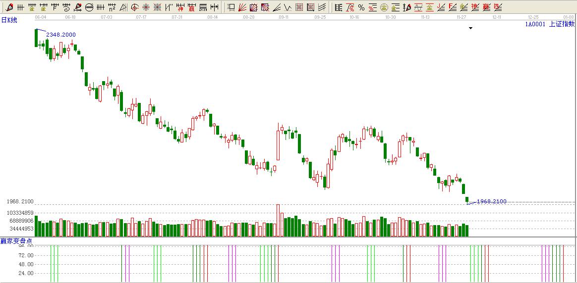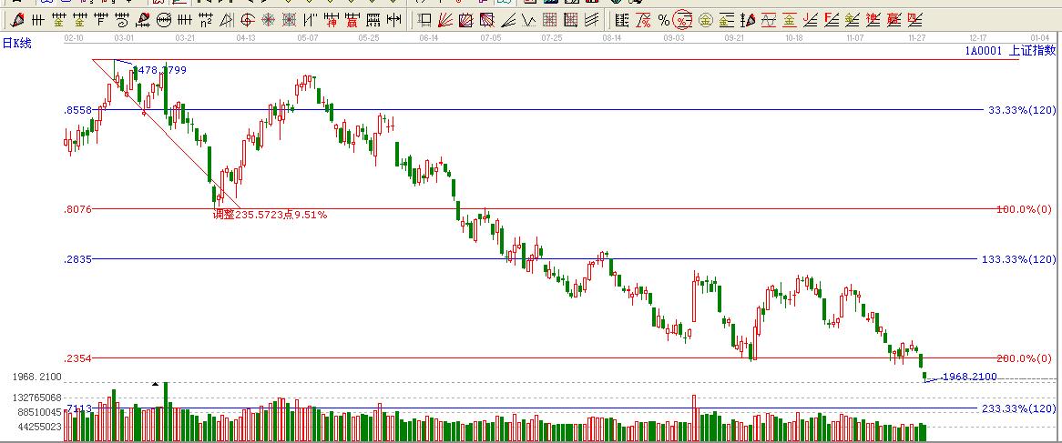 ☆依據(jù)贏家江恩波段百分比延伸線提示:大盤破位0度位置。這里多空分界位置下一支撐在120度位置1928點。0度位置不過看空。休息