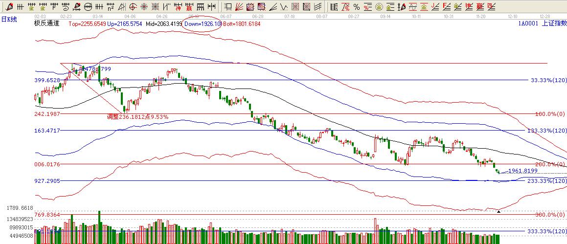 ☆依據(jù)贏家江恩系統(tǒng)極反通道提示:極反通道下軌位置1926點(diǎn).極反通道隨著大盤下跌下移2個(gè)點(diǎn)。
