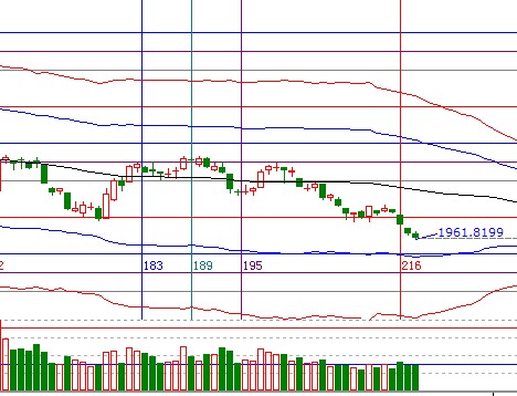 A股日線4連陰弱勢(shì)格局持續(xù),耐心等待K線跌到極反通道外軌線附近,盤面震蕩反抽不建議搶盤中反抽,策略短線投資者空倉(cāng)休息,個(gè)股破位以減倉(cāng)為主,支撐1942-1950阻力1970-1975;