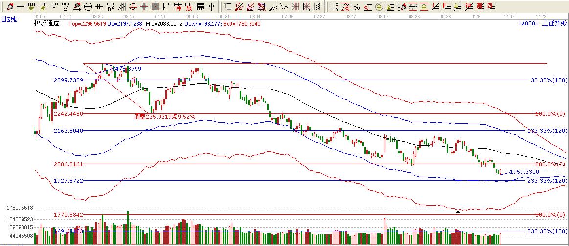 ☆依據(jù)贏家江恩系統(tǒng)極反通道提示:極反通道下軌位置1924點(diǎn),多看少做為主。