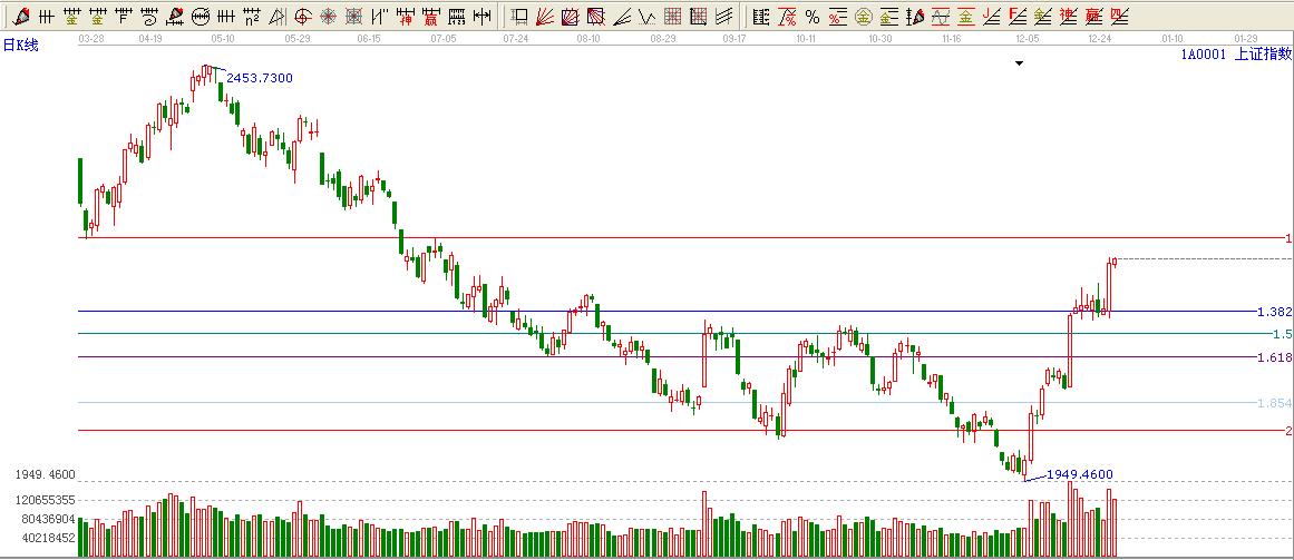 ★依據(jù)贏家江恩黃金價格延伸線提示:大盤依然在1.382位置上方,看多。上方0度位置壓力2250附近。