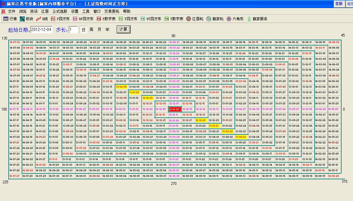 ★依據(jù)時間正方形提示:大盤在12月28日315度位置時間重要時間窗口。下一時間在0度位置12年12年31日