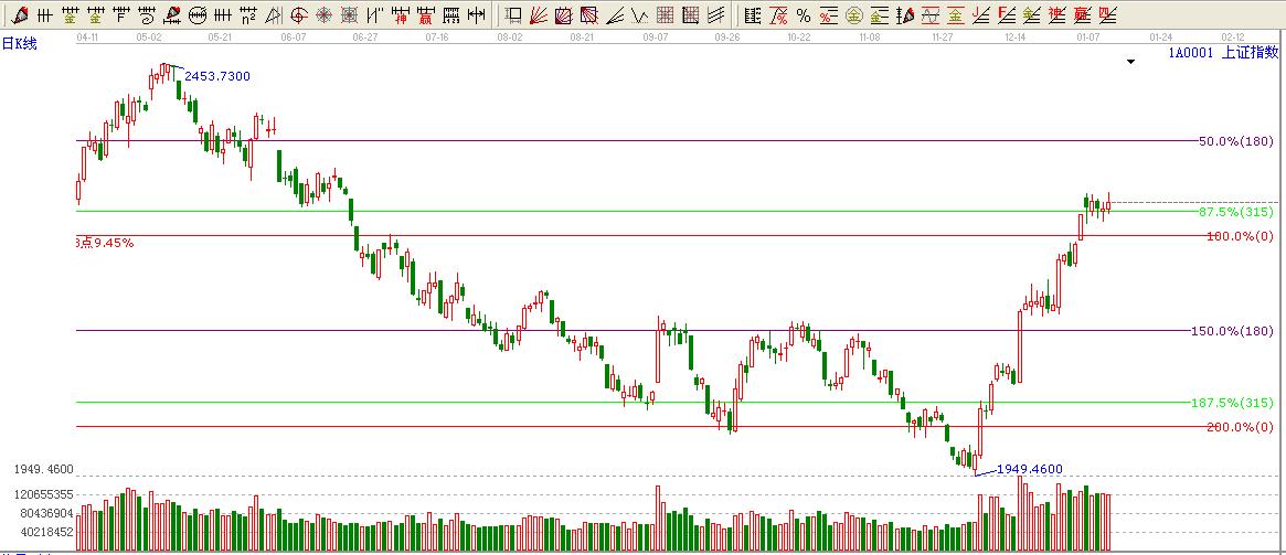 綜上所述:大盤短期波段百分比315度位置2270構(gòu)成短期強(qiáng)支撐。上方上軌壓力2318點(diǎn)。