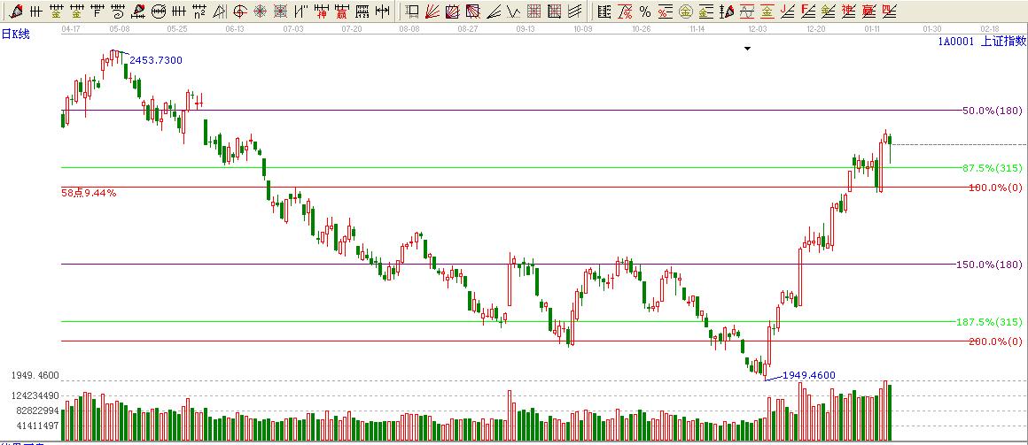 ★依據(jù)贏家波段百分比伸線提示:大盤(pán)依然在315度2270上方運(yùn)行,下一位置就是其180度位置壓力2360附近了。315度位置不破看多。