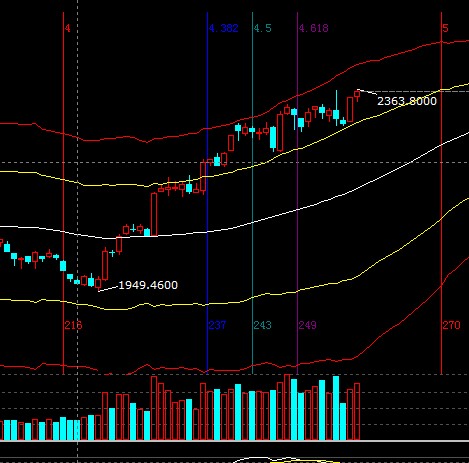 大盤(pán)運(yùn)行在極反通道超強(qiáng)通道,短周期K線距離強(qiáng)勢(shì)外軌線較近盤(pán)中會(huì)在此區(qū)域受阻,整體做多觀點(diǎn)不變,通過(guò)提升止損位保護(hù)收益或倉(cāng)位上做高拋低吸,短期支撐2335-2348,阻力2368-2374;