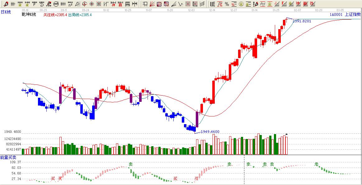 ★依據(jù)贏家乾坤K線提示:大盤在紅色區(qū)間看多做多。