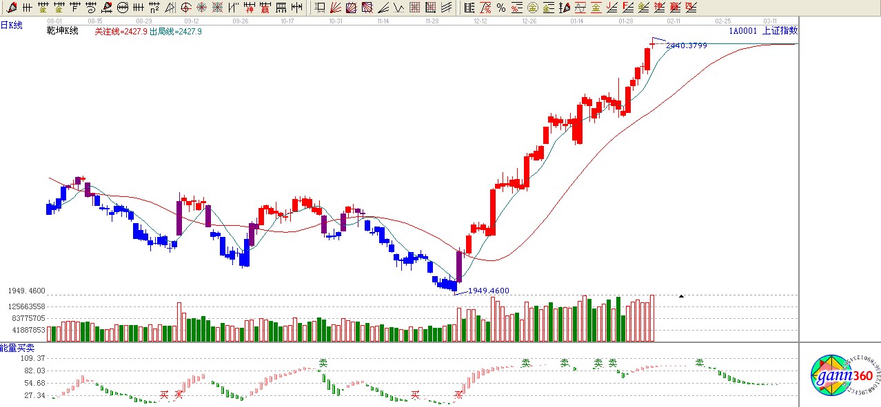 ★依據(jù)贏能量買(mǎi)賣(mài)提示:能量買(mǎi)賣(mài)多空臨界點(diǎn),處于紅色區(qū)2.618位置2443點(diǎn)區(qū)間,黃金位置2.382不破看高一線至3唄位置2515點(diǎn)附近。