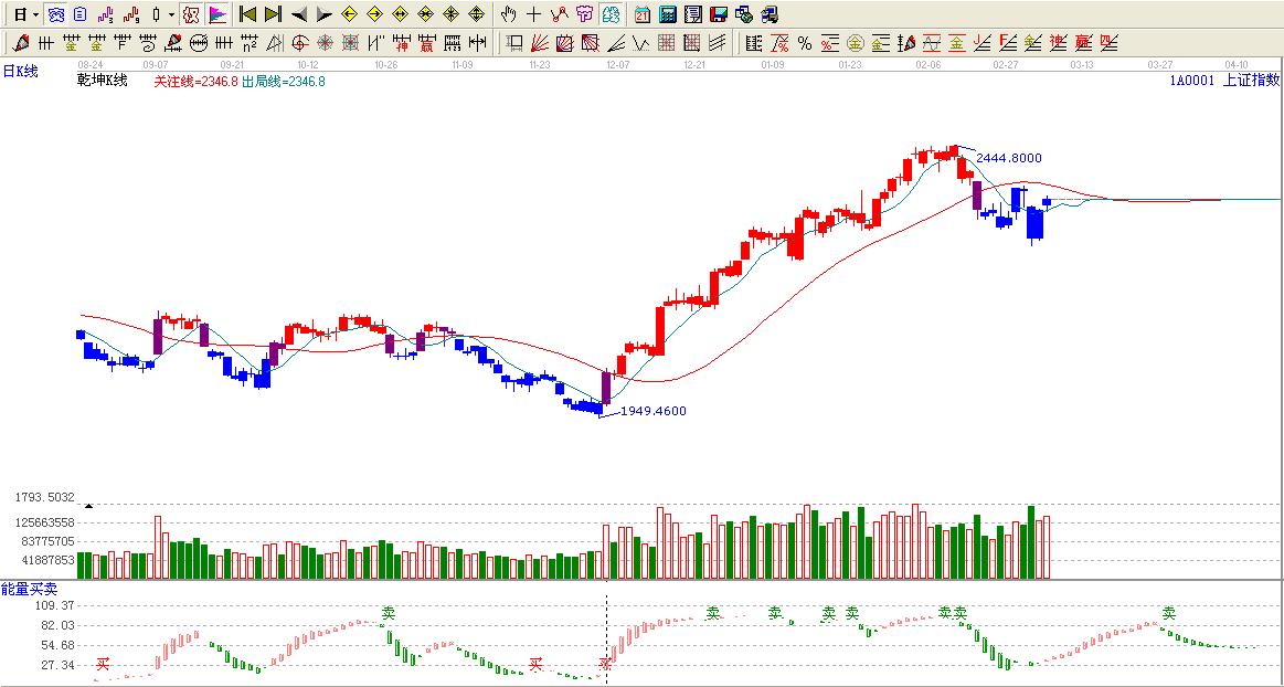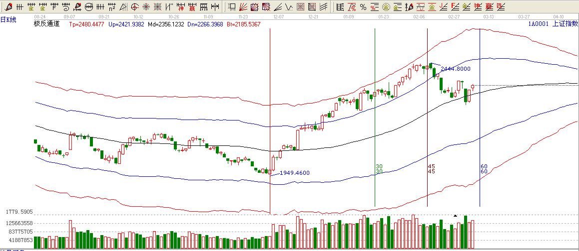 綜上所述:大盤處于極反通道生命線上方,按照極反通道法則:極反通道生命線不破看高至極反通道藍(lán)色上軌2457。