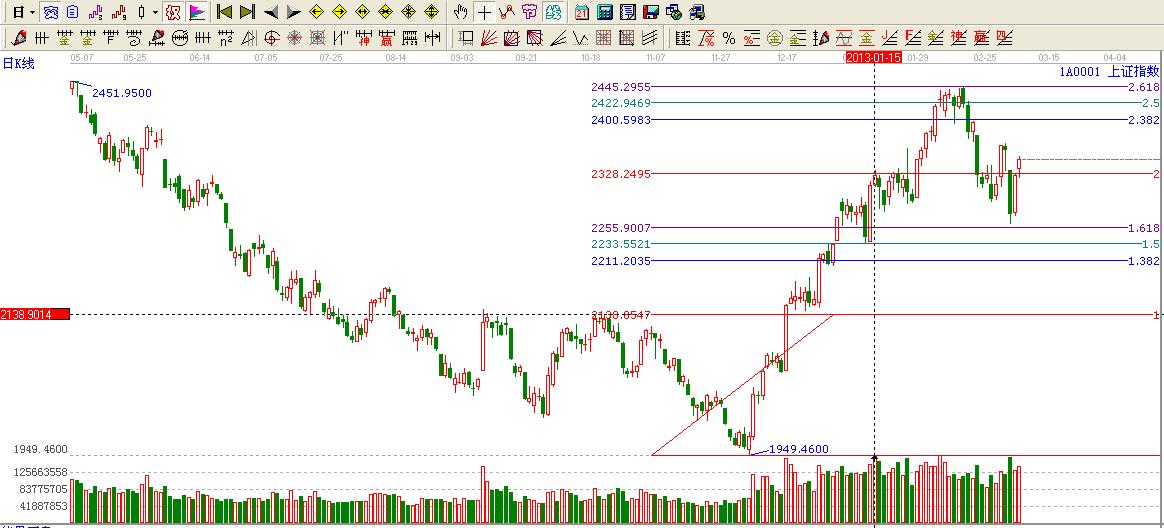 ★依據(jù)贏家黃金價(jià)格延伸線提示:大盤處于2倍延伸位置2325上方,按照贏家工具規(guī)則2倍位置不破看高一線至2.382位置2397點(diǎn)附近。
