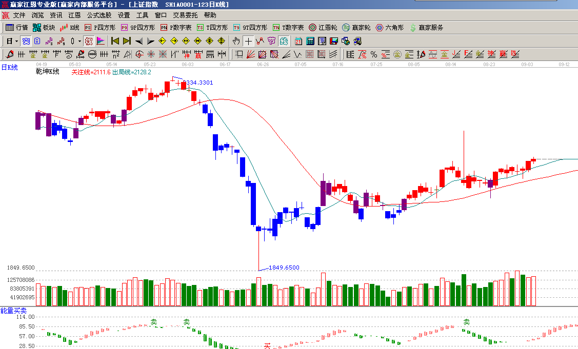 ★依據贏家江恩系統(tǒng)能量買賣提示:多頭當前占據優(yōu)勢,主現(xiàn)紅色柱子;(1)