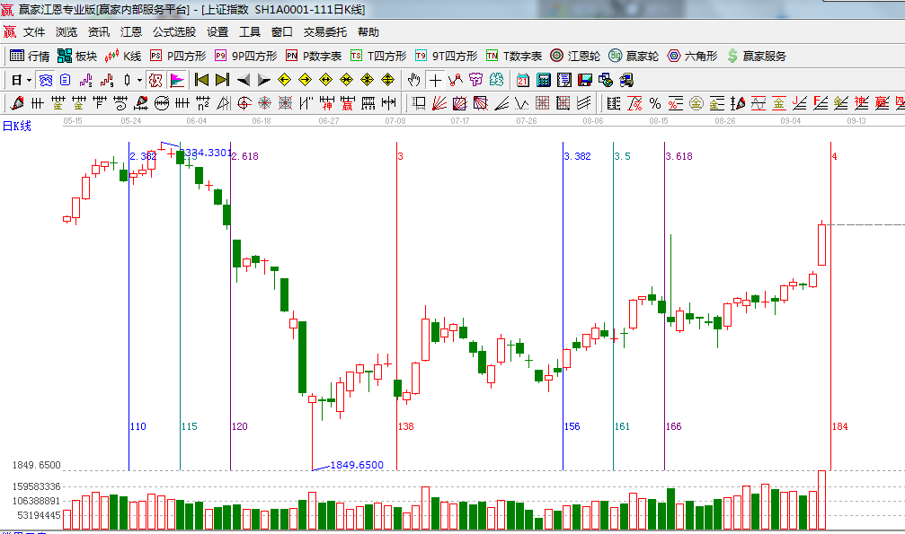 ★依據(jù)贏家江恩系統(tǒng)極反通道提示:日線突破外軌線收盤站在上方,此線成為當(dāng)前支撐,依據(jù)規(guī)則站穩(wěn)一線看高一線,失守一線看低一線,近期觀察此線得失;