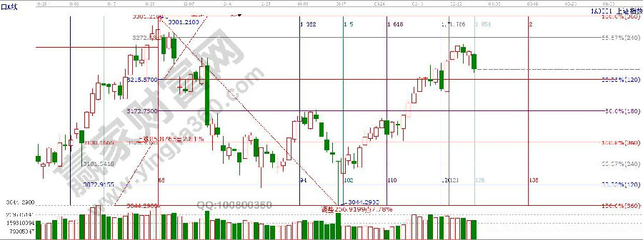 ★依據(jù)贏(yíng)家江恩理論系統(tǒng)極反通道提示:日線(xiàn)藍(lán)色線(xiàn)整理多日,今日回落,接近60分生命線(xiàn)3222點(diǎn)附近。短線(xiàn)關(guān)注此位置的支撐力度。