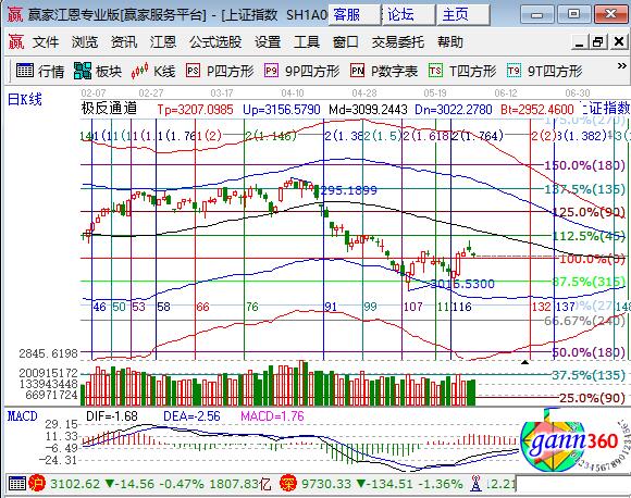 大盤周四低開震蕩下跌0.47%,深成指和創(chuàng)業(yè)板跌幅較大分別下跌1%和2%,市場再現(xiàn)百股跌停模式。板塊方面,保險(xiǎn)、銀行、釀酒、家電和石油逆勢上漲,權(quán)重僅券商小跌;題材方面,次新、可燃冰、國產(chǎn)軟件、高送轉(zhuǎn)領(lǐng)跌,個股普跌成交量較前日略微放量。技術(shù)方面,滬指江恩百分比零度3097位置再度獲得支撐,收盤勉強(qiáng)站上3100點(diǎn),預(yù)計(jì)市場走勢如5月26號所言,圍繞在零度與極反通道構(gòu)成的空間運(yùn)行,昨日盤中已提醒短周期15將要失守,今天30、60分鐘生命線會形成盤中支撐,操作上控制倉位在5成以下,針對波段股進(jìn)行差價(jià)操作,待市場有賺錢效應(yīng)后再開新倉,3089、3078為日內(nèi)支撐,3118、3128為日內(nèi)阻力,僅供參考,不構(gòu)成任何投資建議。