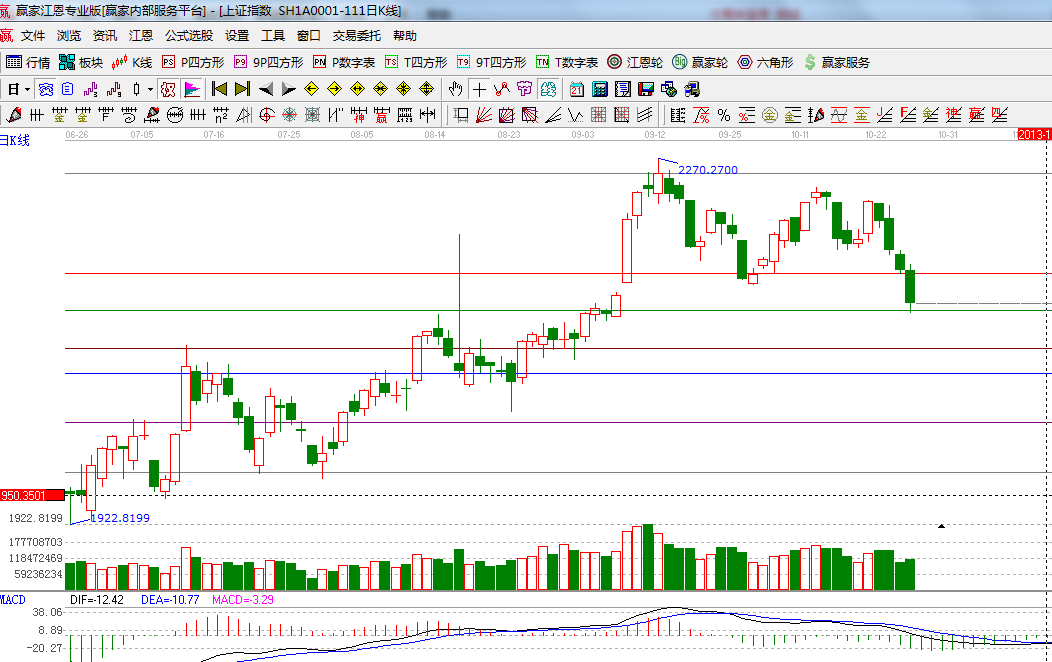 咨詢:13333833889繼24號上證指數(shù)盤中跌破60分鐘極反通道生命線后,25號空方再次跌破日、周線生命線,連續(xù)4天的調(diào)整空方勢如破竹擠壓的情緒得以釋放,依照工具規(guī)則指數(shù)趨勢進(jìn)入弱勢區(qū)域,操作策略為休息或謹(jǐn)慎操作,倉位控制在3成以內(nèi)短線為主,從趨勢角度分析創(chuàng)業(yè)板、滬深300等主要指數(shù)有繼續(xù)下探動作,時間方面觀察日線時間窗29、30號指數(shù)是否能止跌啟穩(wěn);板塊熱點(diǎn)方面預(yù)計將圍繞三季報為主,農(nóng)機(jī)、服飾、石油開采等短期行情有望延續(xù);