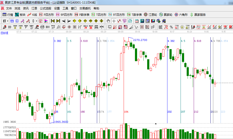 ★依據(jù)贏家江恩系統(tǒng)波段百分比延伸提示:黃金分割價(jià)格圖0.5位置是2090,0.618位置是2035;