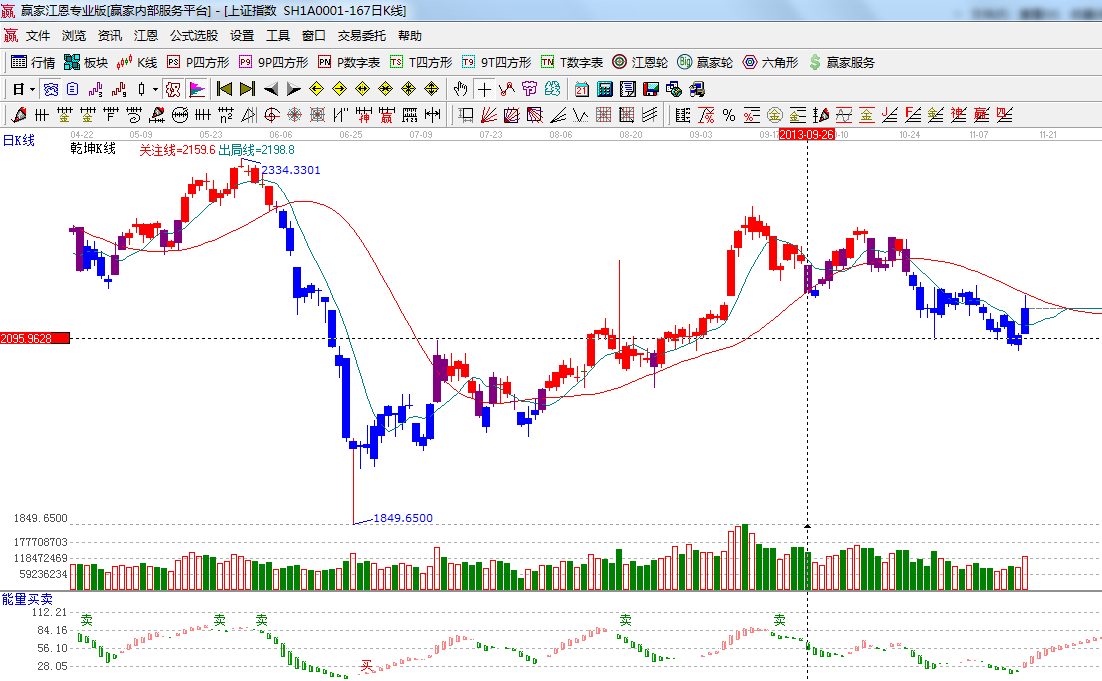 ☆依據(jù)贏家江恩系統(tǒng)極反通道提示:中陽突破60分鐘生命線2130點(diǎn),操作性機(jī)會(huì)到來,日線突破生命線后可加倉;
