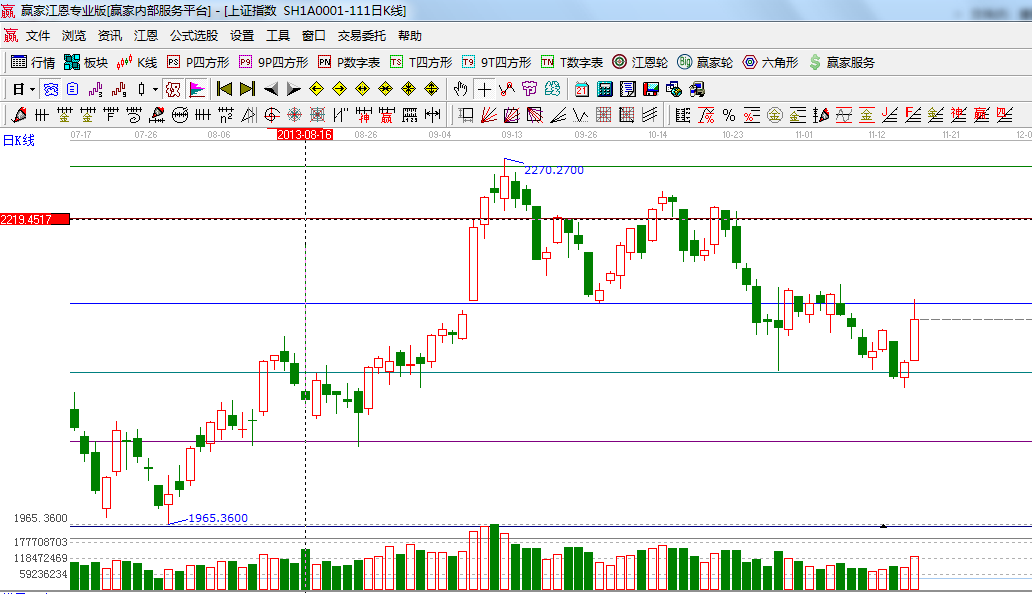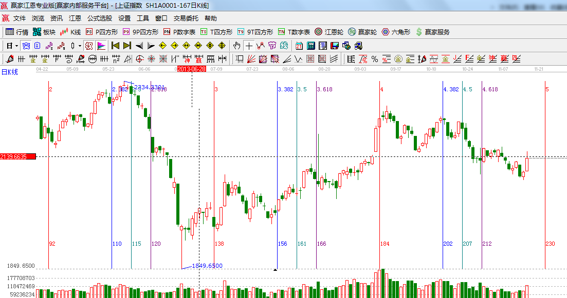 ★依據(jù)贏家江恩系統(tǒng)波段百分比延伸提示:黃金分割價(jià)格圖0.382位置是2149點(diǎn),0.5位置是2090;