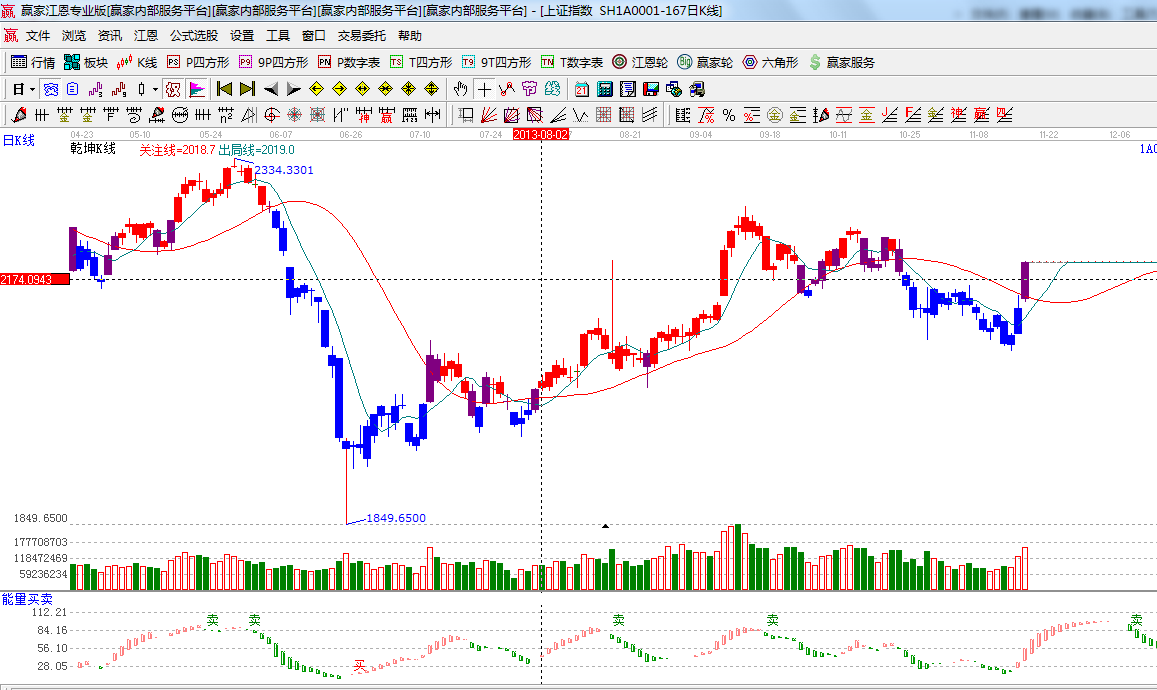 ☆依據(jù)贏家江恩系統(tǒng)能量買賣提示:紅色柱子出現(xiàn),多方占據(jù)主動權(quán)看多;