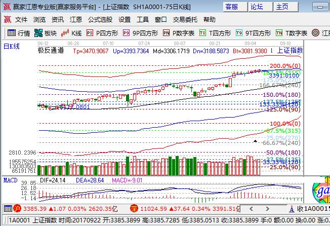 咨詢:13333833889周三大盤低開延續(xù)高位震蕩微漲,早盤走勢(shì)較弱,午盤創(chuàng)業(yè)板帶動(dòng)下回升,幾大指數(shù)全線收紅。板塊方面,僅石油表現(xiàn)較好,保險(xiǎn)、銀行、券商等板塊領(lǐng)跌;題材方面,鋰電、芯片、石墨烯和云計(jì)算領(lǐng)漲,雄安概念走勢(shì)較弱,次新股依然走分化行情,上漲個(gè)股家數(shù)略,成交量較前日有所放大。技術(shù)方面,滬指日線不斷刷新高,日K線早盤在極反通道外軌線下運(yùn)行,下午紅盤在線上運(yùn)行,短期15、30分鐘在生命線上附近運(yùn)行,60分鐘生命線逐漸抬高至3350附近,江恩百分比315度是3370點(diǎn)與外軌線交叉形成盤中支撐,上方0度位置是3417點(diǎn)為近段阻力,波段倉(cāng)位控制在4成,短線倉(cāng)2成,3370、3360為日內(nèi)支撐,3400、3410為日內(nèi)壓力。僅供參考,不構(gòu)成任何投資建議。