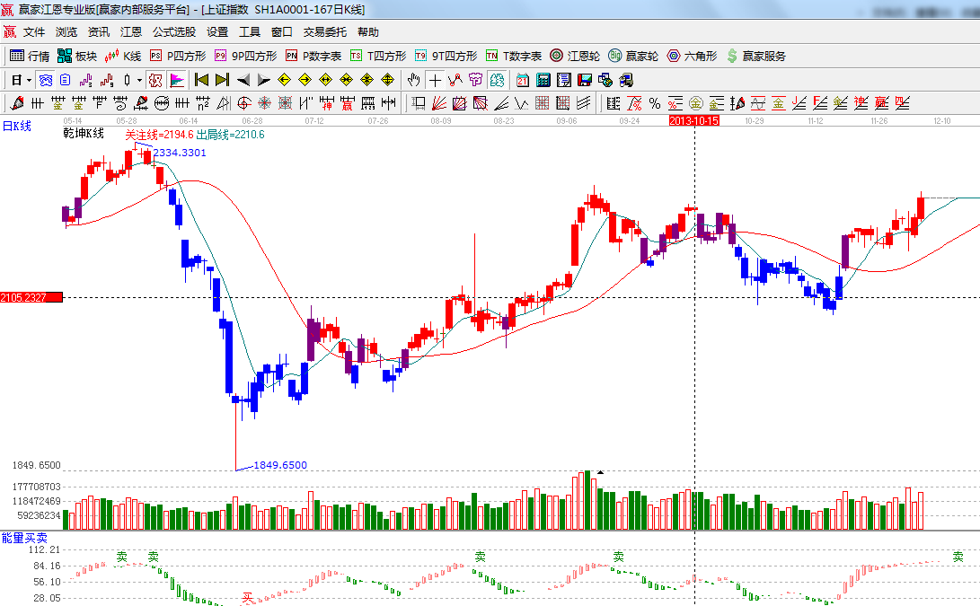 ★依據(jù)贏家江恩系統(tǒng)能量買賣提示:多方量能紅色柱子縮短,量能不能放大謹慎;