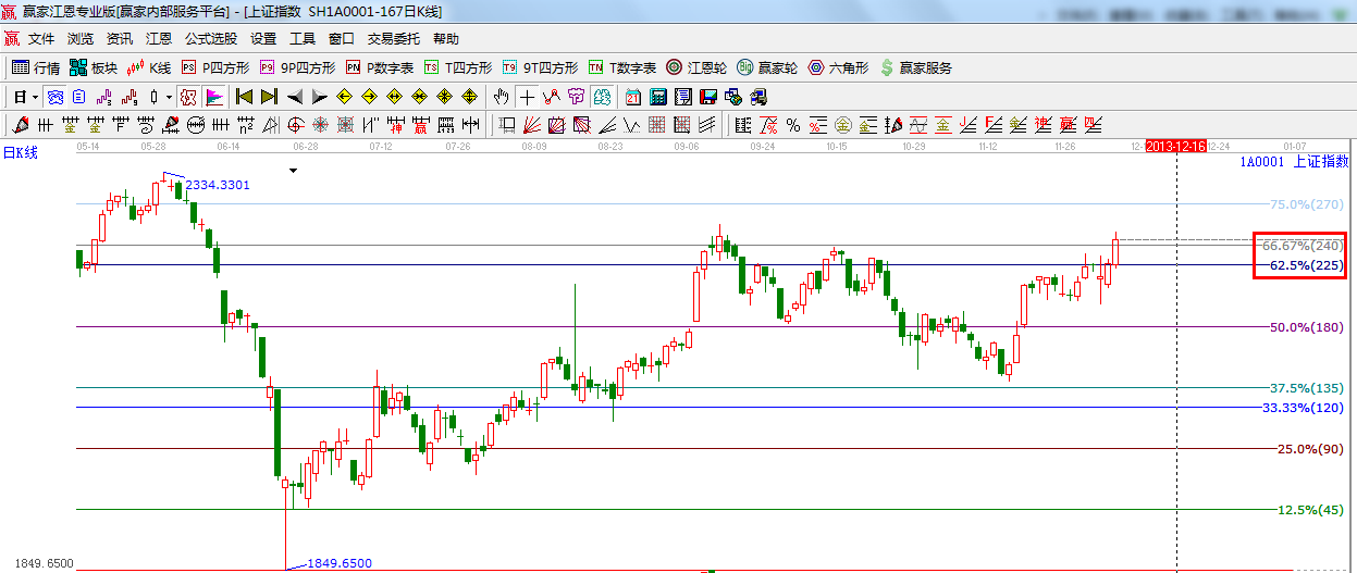 ☆依據(jù)贏家江恩系統(tǒng)波段百分比提示:62.5%與66.67%形成震蕩帶,此區(qū)間以上則短線、波段持股,跌破則減倉;