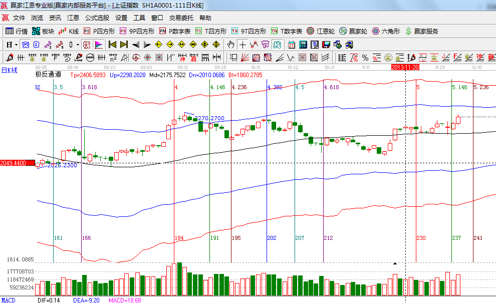 ★依據(jù)贏家江恩系統(tǒng)黃金時間周期線提示:下周一9號為時間點,注意K線形態(tài);