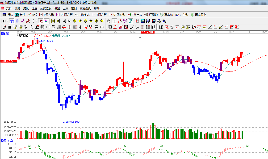 ★依據(jù)贏家江恩系統(tǒng)能量買賣提示:多方量能紅色柱子縮短,量能不能放大謹慎;