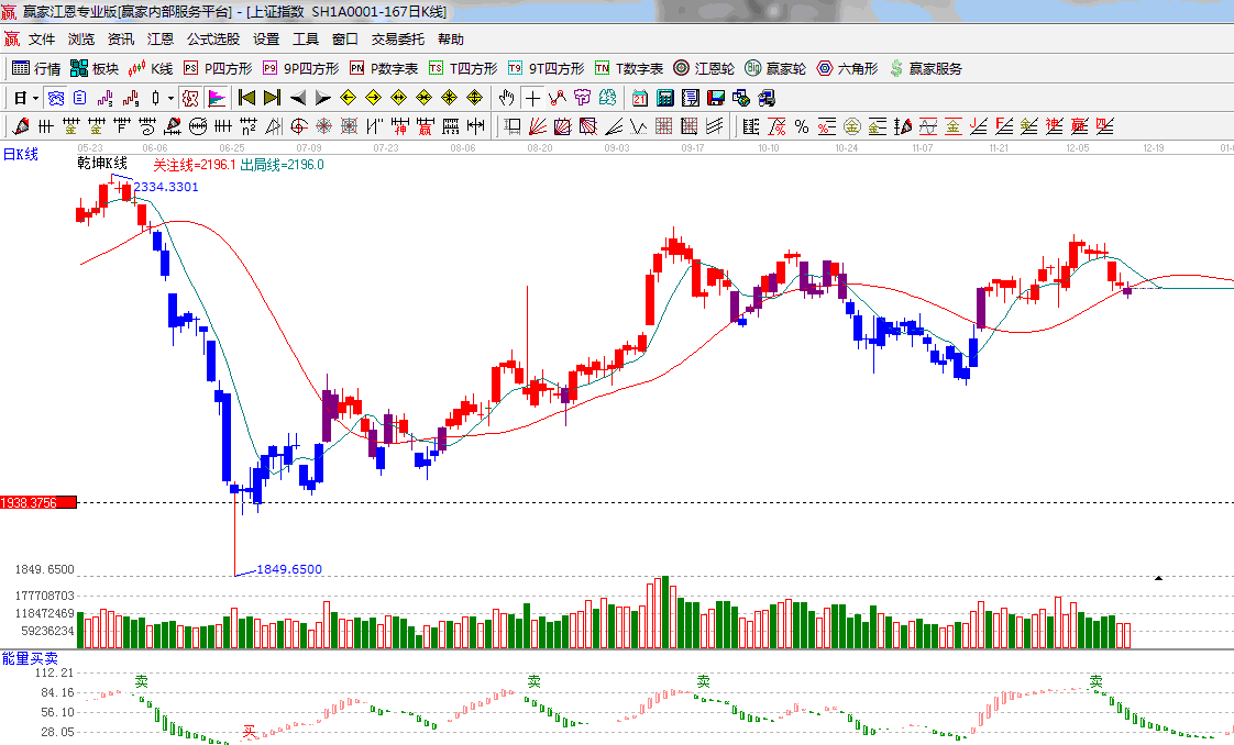 ★依據(jù)贏家江恩系統(tǒng)乾坤K線提示: K線顏色紅轉(zhuǎn)紫,多空博弈加大,等待信號的明確 ;