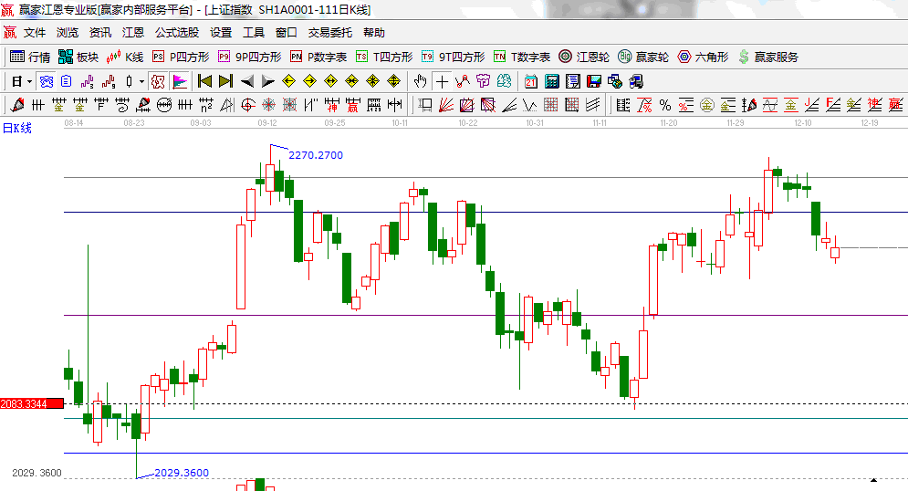 ☆依據(jù)贏家江恩系統(tǒng)波段百分比提示:跌破62.5%與66.67%區(qū)間,50%的位置是2150;