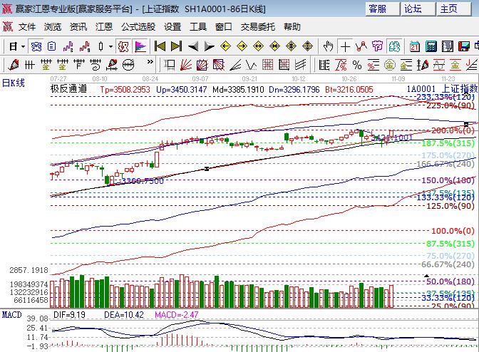 滬指周二高開高走延續(xù)震蕩上漲態(tài)勢,幾大指數(shù)全線上漲,創(chuàng)業(yè)板相對較弱,全天以權重主導,尾盤題材活躍。板塊方面,石油、券商、保險和鋼鐵等領漲,釀酒、醫(yī)藥下跌;題材方面,360、人工智能、芯片和油氣概念領漲題材,自由港、OLED和生物疫苗概念較弱,個股上漲居多成交量放大。技術方面,滬指日線兩度盤中下破生命線后被拉起,隨著橫盤震蕩時間的延伸,極反通道強勢外軌線已從10月27號的3440上移到目前的3465點,短周期15、30、60分鐘再度收復生命線,弱勢震蕩轉化為強勢震蕩,15分鐘即將受到上方外軌線壓力,預計延續(xù)強勢震蕩走勢,波段倉位增長1成為5成,短線保持2成,3396、3390為日內支撐,3424、3438為日內壓力。僅供參考,不構成任何投資建議。