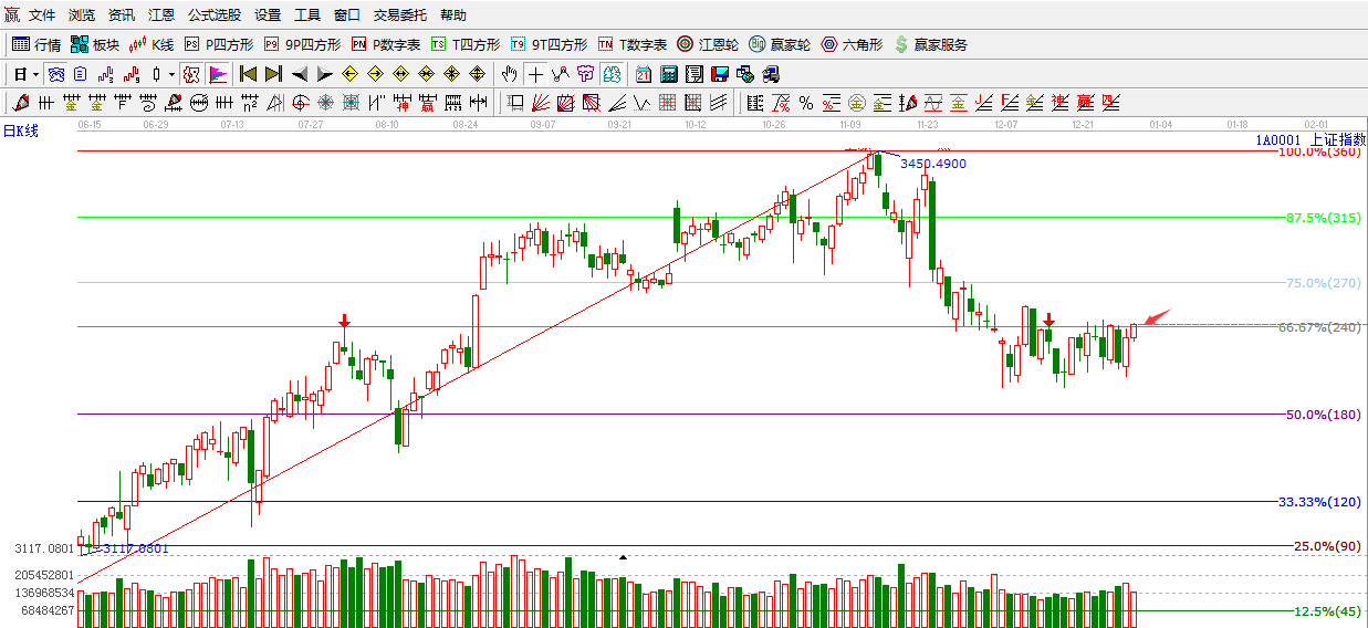 江恩看盤綜述:依據(jù)贏家江恩技術(shù)工具分析得出:周五,指數(shù)震蕩走高,尾盤收復(fù)3305點關(guān)鍵位置,是一個好的信號,但美中不足的是量能同比萎縮,接下來繼續(xù)關(guān)注3305點突破的有效性。如新年第一個交易日,如能繼續(xù)保持在3305點之上,指數(shù)有望繼續(xù)看高日線生命線3342點附近。不然繼續(xù)保持謹(jǐn)慎,操作上,繼續(xù)控制倉位的前提下,重點關(guān)注成長性良好有業(yè)績支撐的小盤股。