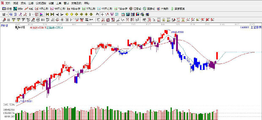 ☆依據(jù)贏家江恩理論系統(tǒng)極反通道提示:周二,滬指高開高走,直接拉升至日線生命線,接下來,關(guān)注生命線的爭奪,生命線價(jià)格是3345點(diǎn)。依據(jù)規(guī)則,日線生命線之上波段看多,之下短期弱勢震蕩為主。
