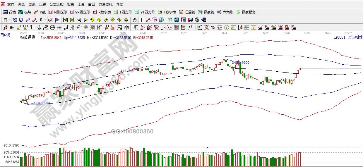 ☆依據(jù)贏家江恩理論系統(tǒng)極反通道提示:滬指持續(xù)走高,盤中突破60分藍(lán)色上軌線,收盤3385點(diǎn)報收,預(yù)計短期繼續(xù)圍繞藍(lán)色線震蕩位置,下方日線生命線支撐依舊是3345點(diǎn)附近。整體,日線生命線之上,趨勢強(qiáng)勢。
