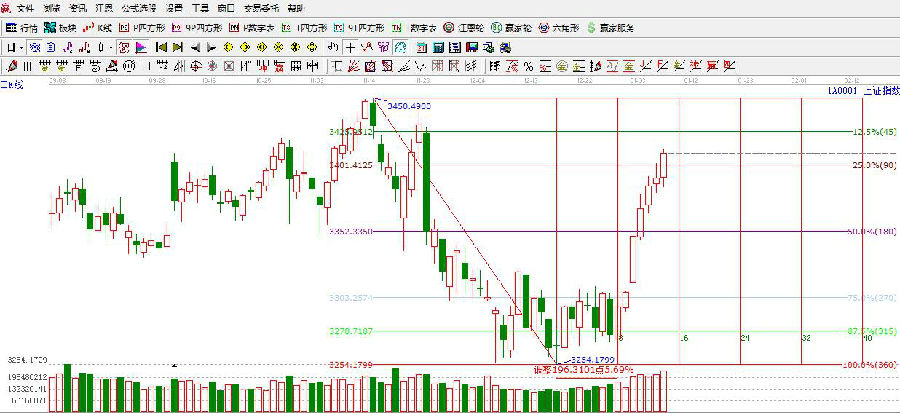 ★依據(jù)贏家江恩理論系統(tǒng)江恩波段百分比提示:滬指超預期上漲,突破了百分比90度強阻力3401點。3401點轉(zhuǎn)變?yōu)橹?,下?80度依舊是3352點附近,上方目標阻力在百分比45度3425點附近?! ?/p>