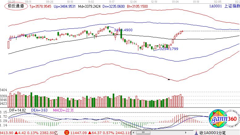 【贏家江恩點評:極反通道工具可幫助用戶解決大盤或個股趨勢判斷、價格買賣點,在日內(nèi)差價高拋低吸方面更能提示其優(yōu)勢?!?/strong>