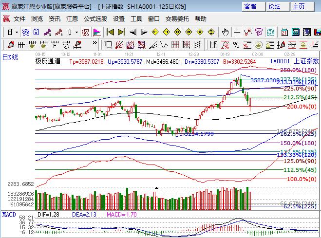 咨詢:13333833889上周五大盤大幅低開下探一度跌破3400點后展開回抽,尾盤在石油帶動下翻紅,深市幾大指數(shù)全線小漲。板塊方面,周期股煤炭、鋼鐵、有色、石油、建材等板塊領漲,環(huán)保、釀酒等領跌,題材無明顯表現(xiàn),次新、海南本地、高送轉和ST等領跌,個股下跌居多,跌停板多達60家,成交量較前日萎縮。技術方面,滬指日線最低基本探至極反通道生命線位置,K線懸空可上可下位置,江恩百分比2倍零度位置3420點與生命線構造支撐區(qū)間,45度(3470點)與外軌線位置(3510點)構成阻力區(qū)間,預計節(jié)前滬指將在此區(qū)間內(nèi)震蕩;創(chuàng)業(yè)板下挫再度試探趨勢線位置后反抽,前期低點1641點附近會有反復;上證50主線品種強勢,此指數(shù)調(diào)整空間有限。市場正在構造中期箱體,操作上不追高,從銀行、地產(chǎn)、化工、周期股輪換中尋找低吸機會。倉位中長線4成倉持股不動,3420、3430為日內(nèi)支撐,3470、3480為日內(nèi)壓力。僅供參考,不構成任何投資建議。