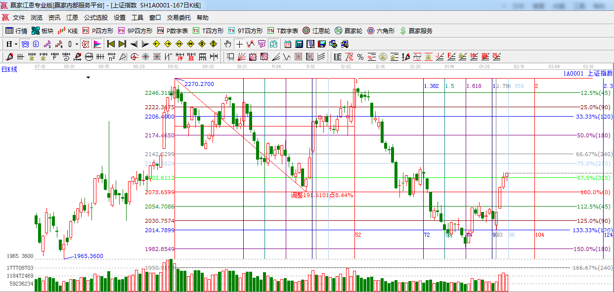 ☆ 依據(jù)贏家江恩系統(tǒng)黃金時(shí)間周期線提示:下一時(shí)間窗口為2月13日(黃金時(shí)間周期線1.854位置)